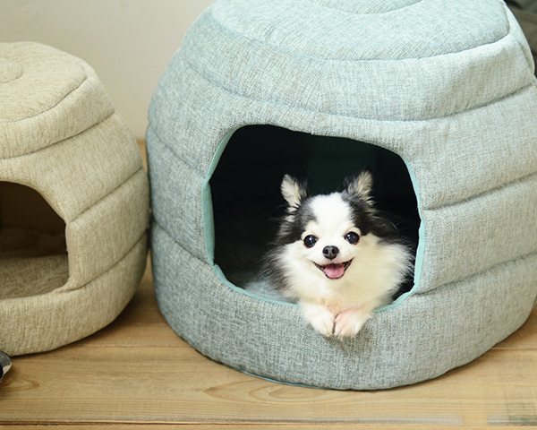 穴蔵へもぐったり、グタ〜っとからだを乗せて眠ったり、使い方はその日の気分次第ですが、何と言ってもこのかまくら型が可愛いですよね。
